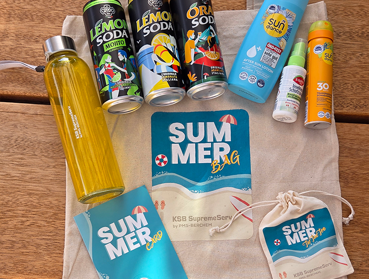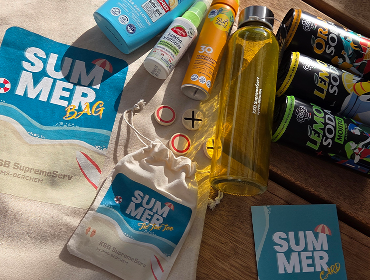Für unseren Kunden KSB Supreme Serv by PMS-BERCHEM haben wir individuelle Sommer-Bags entworfen, die nicht nur funktional, sondern auch echte Hingucker sind. Jede Sommer-Bag wurde mit viel Liebe zum Detail zusammengestellt und beinhaltet hochwertige, saisonal passende Produkte: Sonnenspray, After Sun Lotion und Insektenschutzspray, Alkoholfreie Cocktails, Personalisierte Glasflasche mit Firmenlogo, TicTacToe-Spiel im Sommer-Design mit Logo, Samen-Grußkarte im Sommer-Look, Baumwolltasche mit individuellem Sommer-Design & Logo.